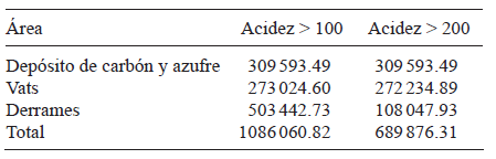 Para el cálculo del volumen a remediar es necesario determinar el grado de acidez que será considerado como máximo permitido. Debido a que en la fecha del estudio no había normatividad de acidez máxima en suelos, se realizaron cálculos de volumetría con dos diferentes niveles de acidez para identificar el porcentaje de aumento del volumen a remediar utilizando un límite más estricto (Cuadro V).