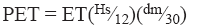 where Hs is maximum number of sunlight hours, dm is number of days per month and ET is evapotranspiration without corrections, which in turn is rewritten as