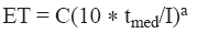 where the constant C=16, tmed is monthly mean temperature, and I is the annual heat index expressed as I = Σ i where
