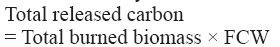 After reviewing previous studies, it was found that the value of 0.2230 corresponding to fraction of C in waste (FCW) (Table III) obtained from Mexican reference (Ordóñez and Hernández 2006) represents 50 % of the IPCC value. This value has not been verified for sugarcane crops in the region of Huasteca Potosina. Likewise, there are other parameters such as fraction burned in fields (FBF) and fraction oxidized (FO) that have not been calculated for Mexico. These are the main reasons why in this study the reference data to calculate the C and N release during the burning of sugarcane were obtained using the values of the IPCC methods.