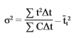 (10)Donde: σ2 θ = varianza adimensional de la curva de distribución del trazador, d = número de dispersión (adimensional), D = coeficiente de dispersión axial (m2/min), t - = tiempo de retención hidráulico (min), Δt = intervalo de tiempo entre toma de muestra (min), t = tiempo transcurrido desde la inyección del trazador hasta la toma de la muestra (min), x = altura entre el punto de inyección y recolección del trazador (m), C = concentración del trazador (mg/L), M = masa del trazador inyectada (mg), V = volumen del reactor (L), v = velocidad ascensional del fluido (m/ min), t t = tiempo de retención hidráulico calculado con la ecuación tradicional (min).