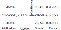 El biodiésel es un combustible alternativo al diésel de petróleo, es un producto biodegradable, no tóxico y menos perjudicial para el ambiente en comparación con el diésel de petróleo. Este combustible es una mezcla de metil ésteres de ácidos grasos (FAME, por sus siglas en inglés), obtenidos de recursos renovables, como los aceites vegetales y las grasas animales, con bajo valor comercial (Dias et al. 2009, Ibeto et al. 2011). El biodiésel es obtenido por transesterificación de triglicéridos, constituyentes principales de los aceites vegetales y grasas animales, con un alcohol de cadena corta (metanol, principalmente), en presencia de un catalizador adecuado. Los catalizadores alcalinos como el hidróxido de potasio o de sodio y los metóxidos de potasio y sodio, son los catalizadores más comúnmente utilizados en la producción de biodiésel (Predojević 2008). La transesterificación consiste en tres reacciones consecutivas reversibles donde los triglicéridos son convertidos a diglicéridos, los diglicéridos a monoglicéridos y estos a glicerol (subproducto principal de la reacción). En cada etapa se usan tres moléculas de alcohol por molécula de triglicérido. Estequiométricamente se producen tres moles de éster por cada mol de triglicérido (Sharma y Singh 2008) como se indica de forma resumida en la reacción 1: