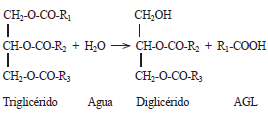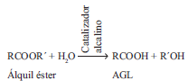 Por otro lado, los contenidos de agua y de AGL de la materia prima afectan el proceso de transesterificación de glicéridos con alcoholes e interfieren en la separación de los ésteres de ácidos grasos y glicerol (Freedman et al. 1984). El agua, proveniente de las grasas y aceites o la formada durante la reacción de saponificación, retarda la reacción de transesterificación a través de reacciones de hidrólisis (reacción 3). Los triglicéridos pueden ser hidrolizados a diglicéridos y formar más AGL (Leung et al. 2010).