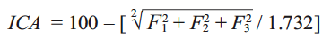 El valor de 1.732 normaliza los valores resultantes a un rango de 0 a 100, donde 0 representa la peor condición de calidad de agua y 100 la mejor condición. F1 es el porcentaje de parámetros que no cumplen con un valor de referencia (número de parámetros que no cumplen con el valor de referencia / número total de variables × 100). F2 es el porcentaje de valores individuales de los parámetros que no cumplen con el valor de referencia (número de valores de los parámetros que no cumplen con el valor de referencia / total de valores de los parámetros medidos × 100). F3 es la amplitud con la que no se cumplió con el valor de referencia, calculada como una función asintótica que escala la suma normalizada de desviaciones (sne) para dar un rango de 0 a 100, mediante la siguiente ecuación: F3 = [sne / (0.01sne + 0.01)]. Sne se estima como: sne = [∑ei] / número de pruebas.
