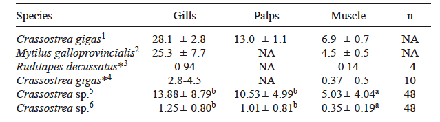 Luna C., Bustamante P., Godefroy J., Fruitier A.I. and Thomas G.H. (2010). Seasonal variation of pollution biomarkers to assess the impact on health status of juvenile Pacific oysters Crassostrea gigas exposed in situ. Environ. Sci. Pollut. Res. 17, 999-1008. DOI: 10.1007/s11356-009-0287-1