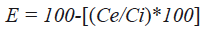 E = Eficiencia de remoción; Ce = concentración del compuesto en el efluente; Ci = concentración del compuesto en el influente.