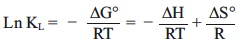 En el modelo de la isoterma de Langmuir, el parámetro KL es dependiente de la temperatura y puede emplearse para predecir parámetros termodinámicos como la energía libre de Gibss (ΔG°), la entalpía (ΔH°) y la entropía (ΔS°) a través de las siguientes ecuaciones: