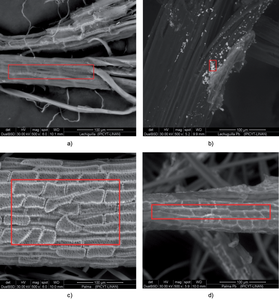 Finalmente, se concluye que los residuos de las fibras naturales Agave lechuguilla Torr. (lechuguilla) y Yucca carnerosana (Trel.) McKelvey (yuca) son una alternativa para la bioadsorción de Pb (II) de soluciones acuosas.