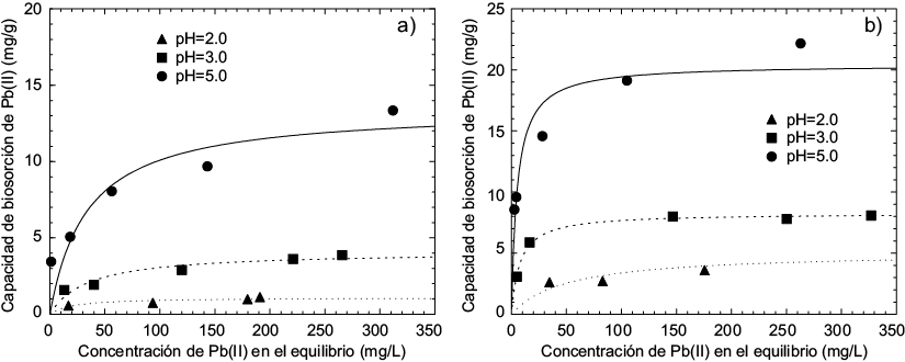 Efecto del pH en la isoterma de bioadsorción de Pb (II)