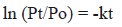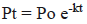 en donde Po y Pt es la masa inicial y remanente de hidrocarburos respectivamente, t es el tiempo transcurrido y k la constante de pérdida (Mager y Hernández Valencia 2013). La ecuación anterior puede ser expresada también como: