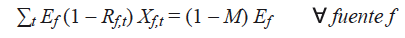 Xf,t: Variable binaria que determina si una fuente de tipo f utiliza una alternativa de tipo t para la reducción de emisiones.