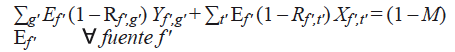 Xf’,t : Variable binaria que determina si una fuente de tipo f’ utiliza una alternativa de tipo t para la reducción de emisiones.