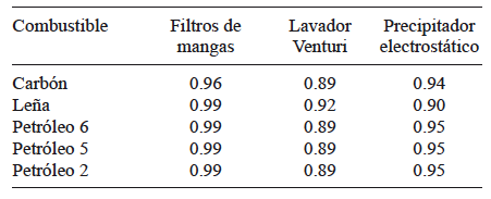 La eficiencia de cada una de las tecnologías de abatimiento analizadas se presenta en el cuadro III.