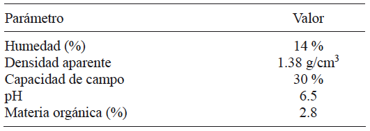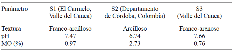 Como material de partida para el desarrollo de los experimentos de optimización se colectó suelo sin registro de uso agrícola y se expuso al sol por 48 h. Se aseguró la limpieza del suelo con un análisis de plaguicidas anterior a los procedimientos experimentales de extracción y no se detectó la presencia de los compuestos de estudio. El suelo usado proviene del campus universitario de la Universidad del Valle (Cali, Colombia). Los parámetros que se determinaron para llevar a cabo la caracterización del suelo fueron: contenido de materia orgánica (MO), densidad aparente, capacidad de campo, pH y textura del suelo.