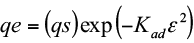 The fourth isotherm model used in this work was the Dubinin–Radushkevich isotherm (Dubinin and Radushkevich 1947, Dubinin 1960). The model has been successfully fitted high solute activities and the intermediate range of concentrations data as well.