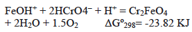 The positively charged BFD surface attracts and reacts with the HCrO4- ions to form Cr2FeO4, according to: