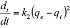 In this equation, the driving force (qe-qt) is proportional to the available fraction of actives sites and k2 is the second order rate constant.