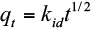 where kid is the intraparticle diffusion rate constant. The plot qt against t1/2 represents the different steps of adsorption: external or film diffusion, intraparticle diffusion and adsorption in active sites or mass action. Then, the linear portion of the curve qt versus t1/2 represents the intraparticle diffusion. The slope yields the intraparticle diffusion rate constant kid and the intercepts reflects the boundary layer (BL) effect. The bigger the intercept, the greater is the contribution of the surface sorption to the rate-controlling step.