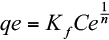 Freundlich adsorption isotherm is commonly used to describe the adsorption characteristics of heterogeneous surfaces (Freundlich 1906, Hutson and Yang 2000). These data often fit the empirical equation proposed by Freundlich: