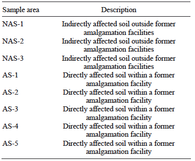 The most affected soils were those on which amalgamation activities were conducted. Besides, the Hg concentrations in soils determined at areas outside of the former amalgamation facilities, indicated that Hg was dispersed in the surrounding areas.