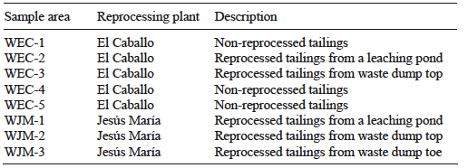 The reprocessed amalgamation tailings were dumped near the facilities, which were abandoned after the closure of the reprocessing plants in Cedral. Therefore, within the urban area of Cedral, two primary reprocessed tailing dumpsites exist: El Caballo and Jesús María (Fig. 1).