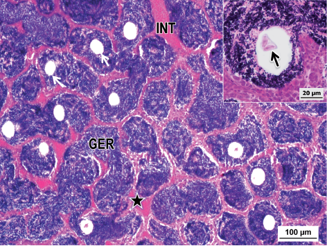 van der Ven L.T.M., Wester P.W. and Vost J.G. (2003). Histopathology as a tool for the evaluation of endocrine disruption in zebrafish (Danio rerio). Environ. Toxicol. Chem. 22 (4), 908-913. DOI: 10.1002/etc.5620220431