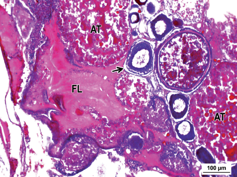 Feist S.W., Stentiford G.D., Kent M.L., Ribeiro-Santos A. and Lorence P. (2015). Histopathological assessment of liver and gonad pathology in continental slope fish from the northeast Atlantic Ocean. Mar. Environ. Res.106, 42-50. DOI: 10.1016/j.marenvres.2015.02.004
