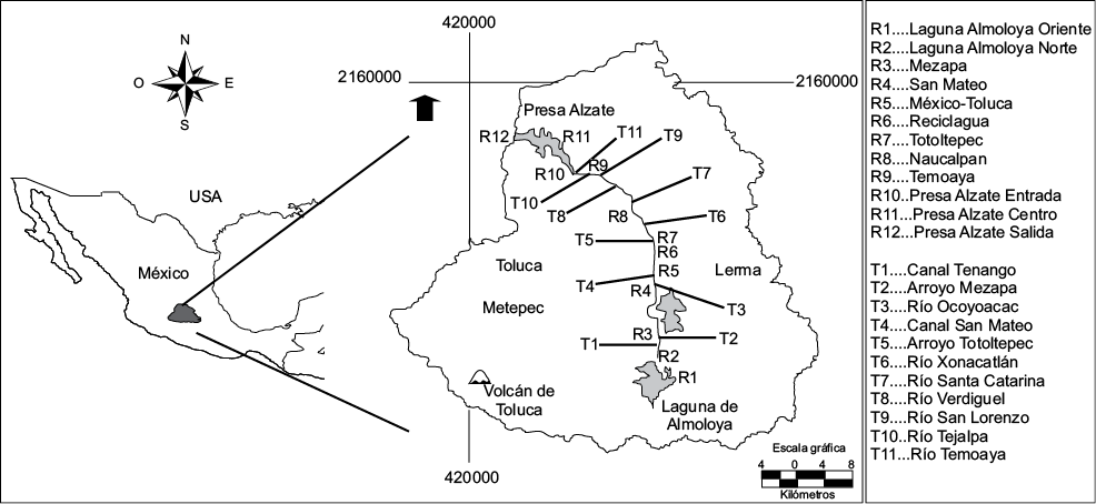 La zona metropolitana del valle de Toluca (ZMVT) descarga sus aguas residuales en colectores (7 %), campos, pozos de absorción y subsuelo (27 %), canales (31 %) y ríos y arrollos (35 %), de las cuales más de la mitad tributan al río Lerma. Así, este cuerpo de agua se ha convertido en el principal colector de los desechos industriales y domésticos con un alto contenido de materia orgánica, compuestos nitrogenados, metales pesados y otras sustancias químicas tóxicas, que no se degradan fácilmente en condiciones naturales (Tejeda et al. 2006, Zarazúa 2008, Ávila et al. 2011, Zarazúa et al. 2011).
