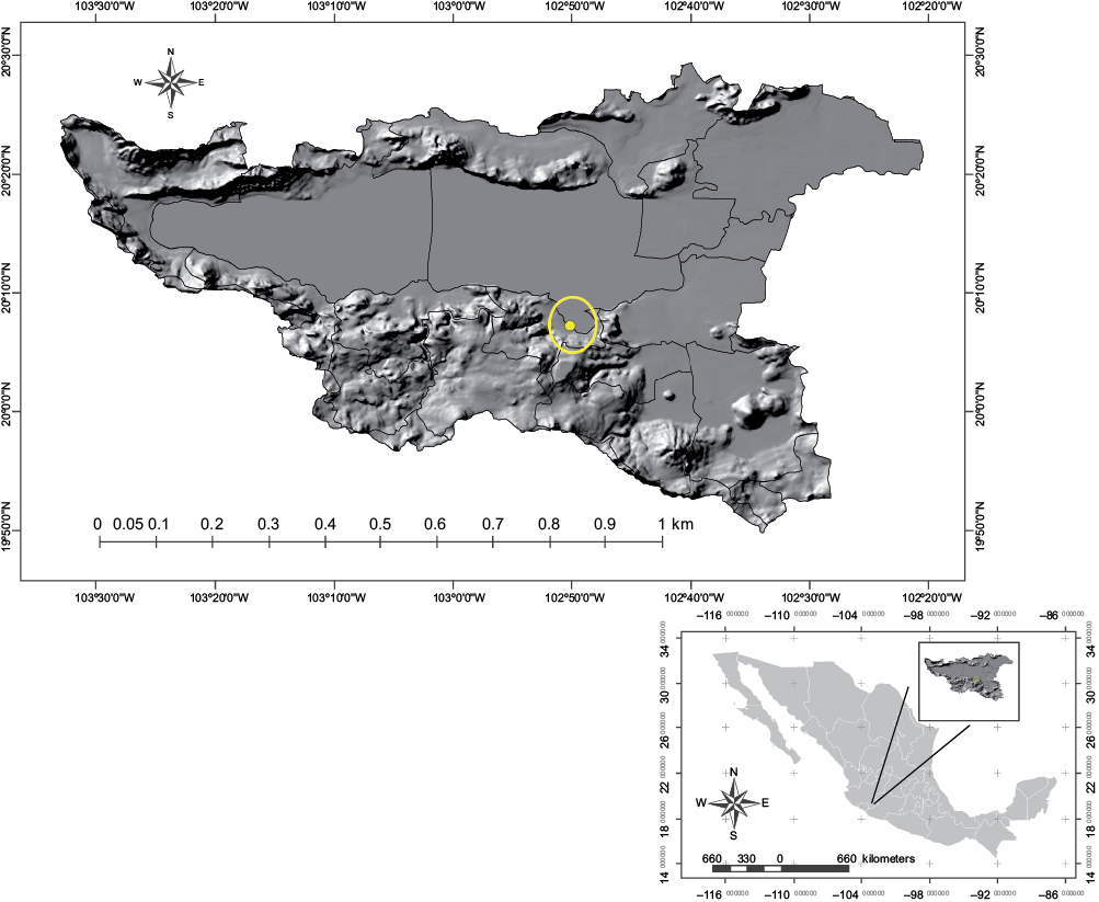 El lago de Chapala se encuentra en la meseta central de México, entre los estados de Jalisco y Michoacán, y es el lago tropical más grande del país. Este estudio se llevó a cabo en la orilla del lago de Chapala que colinda con la región de Petatán, Michoacán, México (20º 07’ N, 102º 50’ O) (Fig. 1), a una altura de 1520 msnm. Su clima es templado con lluvias en verano, precipitación pluvial anual de 800 mm, y temperaturas que varían de 10.4 a 25.4 ºC (INEGI 2016).