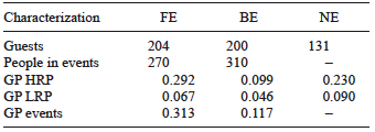 FE: Festive events; BE: bussiness events; NE: no occurrence of events; HRP: high reciclyng potential; LRP: low recycling potential