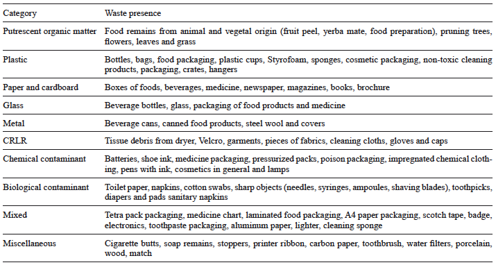 On the other hand, the miscellaneous categories, mixed, CRLR and metals, contributed equally (p > 0.05) with 9.5 % of the total waste (Table V). The chemical contaminants category generated the least amount of wastes (p > 0.05) and only in specific sectors (Table IV), which can be attributed to the particular use of this type of waste.