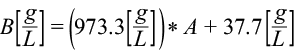 La ecuación (7) se obtuvo al graficar datos experimentales de biomasa (g/L) contra absorbancia para un mismo tiempo y ajustar a una recta. En esta forma la cantidad B [g/L] proporciona la correspondiente biomasa cuando se mide la absorbancia A (la absorbancia no tiene unidades), que se encuentra en una toma de muestra. Se observa que la ecuación es una recta, la cual indica que la relación de absorbancia y biomasa es lineal; sin embargo, como se obtuvo experimentalmente tiene el término de la ordenada al origen distinto de cero (37.7 [g/L]), pero en magnitud menor a la pendiente (973.7 [g/L]), por lo que su contribución no es fuerte en la estimación de la biomasa.
