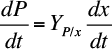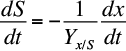 Los productos metabólicos y el sustrato se comportan de acuerdo con las ecuaciones diferenciales siguientes (Rittman y McCarty 2001) a través de los respectivos rendimientos Yx/S, YP/x: