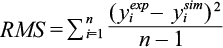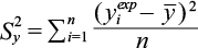 donde yiexp es el valor experimental de la variable de interés y; yisim el valor simulado u obtenido teóricamente por el modelo matemático; el promedio de los valores medidos o experimentales de y; Sy2 la varianza total, que es una medida cuadrática de la dispersión de los valores medidos o experimentales respecto del valor medio, y, finalmente, n es el número de datos medidos.