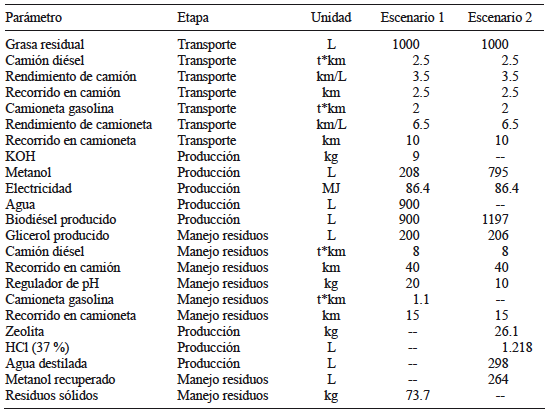 La información empleada en el ACV del proceso de producción de biodiésel se divide en tres apartados:
