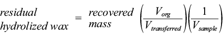 where Vorg is the volume of the organic phase after the extraction. Because the solvent mixture includes methanol, not all the solvent remains in the organic phase after contact with the aqueous medium. We measured Vorg to be 15 mL when using chloroform/ methanol 10:5. Vtransferred was 5 mL and Vsample (volume of medium taken from the culture) was 10 mL.