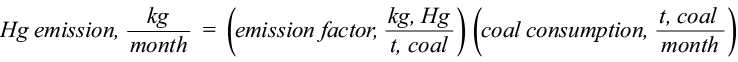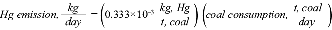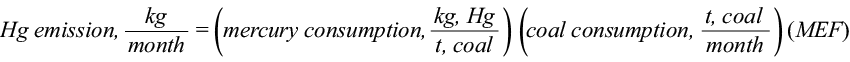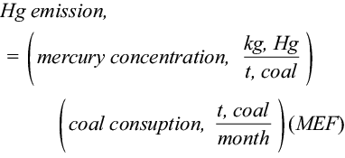 The second method, developed by the USEPA in 1997, uses the mercury content in the combusted coal and the modified emission factor from which the follow equation is obtained for mercury emissions: