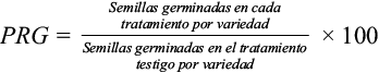Porcentaje relativo de germinación (PRG)
