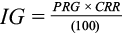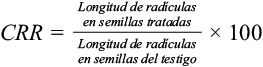 (2)donde PRG es el porcentaje relativo de germinación, variable que fue descrita previamente y CRR el crecimiento relativo de radícula, cuya fórmula de cálculo se describe posteriormente.