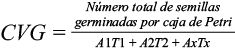 (3)donde A es el número de semillas germinadas, T el tiempo en días correspondiente a A y los números 1, 2,..x corresponden al número de días desde el inicio (1) hasta la evaluación final.