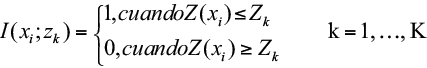donde I(xi;zk) es la variable indicadora, z(xi) es la variable medida y zk es el umbral deseado.