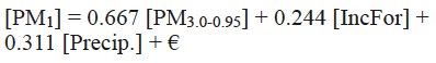 El modelo de RLM diseñado explica el 75.9 % de la varianza, es estadísticamente significativo para p < 0.000, cumple con los requisitos de validez de una RLM y presenta un indicador de MBE igual a –1.5 µg/m3, por lo que se establece que el modelo subestima la concentración de PM1.