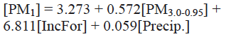 a. Al aumentar la concentración de PMcuasifino (PM3.0-0.95) aumenta la concentración de PM1, lo que coincide con los resultados obtenidos en el análisis correlacional. Esta variable es la de mayor importancia al momento de predecir la concentración de PM1 (véase β en el cuadro VII).
