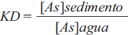 Las concentraciones de Cu se determinaron por espectroscopia de absorción atómica en la modalidad de llama (aire-acetileno) a 324.7 nm. Los análisis se hicieron por duplicado y la calidad de los resultados y validación de protocolos para sedimentos se evaluó mediante el material de referencia certificado Estuarine Sediment (SRM 1646) del National Bureau of Standards, el cual certifica Cu y As (18 ± 3 y 11.6 mg/kg, respectivamente). Todas las concentraciones se expresan en peso seco de la muestra de sedimento. Las determinaciones de la constante de distribución (K.) entre matrices, el índice de geoacumulación y el factor de enriquecimiento para As en los cuatro ambientes se calcularon según las siguientes ecuaciones: