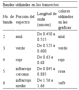 Es importante mencionar que los satélites Landsat tienen un periodo de paso de 16 días, existiendo un promedio de dos escenas por mes en los años que se encuentran en operación los satélites Landsat 5 y 7 y un promedio de tres escenas por mes en los años en que inició la operación del satélite Landsat 8. La resolución espacial del sensor a bordo de Landsat 5 es de 30 m para la multiespectral y de 120 m para la termal; la del sensor a bordo de Landsat 7 es de 30 m para la multiespectral, 60 m para la termal y 15 m para la pancromática, finalmente la resolución espacial del sensor a bordo del satélite Landsat 8 es de 30 m para la multiespectral, 100 m para la termal y 15 m para la pancromática.