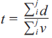 donde . es el indicador de conectividad a centros de valorización de RSU, expresado en minutos (min); . es la sumatoria de segmentos (de . a .) de calles, caminos y carreteras, que describen la ruta de origen y destino, expresada en metros, y . es la sumatoria de velocidades óptimas (de los segmentos . a .), expresados en metros por segundo (m/s).