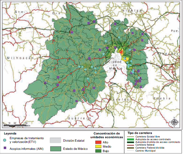 Se considera que el 21.2 % de los residuos generados en el Estado de México son valorizables (materiales con mercados ya consolidados) (CMM 2015), por lo cual es posible establecer que existe un gran potencial de aprovechamiento de los RSU con impacto directo en las dinámicas económicas y de desarrollo de la región. Sin embargo, es necesario comprender la complejidad propia del Estado de México con relación a sus redes de transporte, concentración urbana, diversidad geográfica, social y política, y generación de RSU.