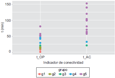 En la figura 4 se observar la distribución de los datos del indicador de conectividad para la relación actual y la óptima entre los AIN y las ETV, dividido en cinco grupos.