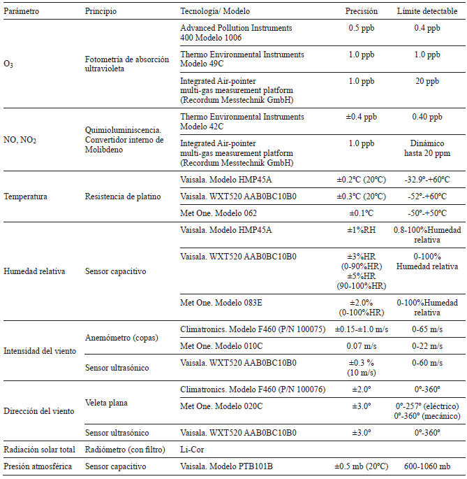 La campaña de mediciones Puebla-Tlaxcala 2012 corresponde a la temporada cálida seca, cuando la radiación solar es intensa e incluye parte de la temporada de O. en el centro de México. Se ubicaron tres unidades móviles equipadas con instrumentos para la determinación de calidad del aire y parámetros meteorológicos; una de ellas perteneciente al Instituto Nacional de Ecología y Cambio Climático (INECC) montada en Amozoc (AMOZ) y otras dos pertenecientes al Centro de Ciencias de la Atmósfera de la Universidad Nacional Autónoma de México (CCA-UNAM) montadas en Chipilo (CHIP) y Huaquechula (HUAQ) (Fig. 2). El cuadro I describe los instrumentos utilizados en cada uno de los sitios con mediciones en superficie y con el globo cautivo instrumentado. Las mediciones del perfil vertical de O. y de las variables meteorológicas se efectuaron acoplando una ozonosonda con instrumentación meteorológica a un globo cautivo sólo en el sitio CHIP. La medición del perfil de O. se realizó con una ozonosonda conformada por una celda electroquímica (redox iodo-iodo) en las fechas y horas que se muestran en el cuadro II. Se programaron tres sondeos al día (09:00 h, 12:00 h y 18:00 h) con la intención de conocer la evolución de la capa de mezcla diurna y su relación con las concentraciones de contaminantes en superficie. Sin embargo, por cuestiones de seguridad, el lanzamiento de las 18:00 h fue suspendido en varios días, ya que la velocidad del viento cerca de la superficie excedió los 10 m/s, lo cual representa un riesgo tanto para la instrumentación anclada al globo, como de ruptura del cable de sujeción del globo.