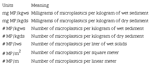 The concentration of microplastics can be reported in different units, most based on counting or weighing all the particles found in every sample point. A convenient, standardized way is to express the results in terms of mass of microplastics (mg), applied to a different basis, as shown in table III. The volume of sand is calculated by the dimension of the sampler. When required, area can be computed as the base of the cylindrical sampler, and length as its diameter. After calculating the results for each sampling point, the average, median, standard deviation and interval of confidence must be computed.